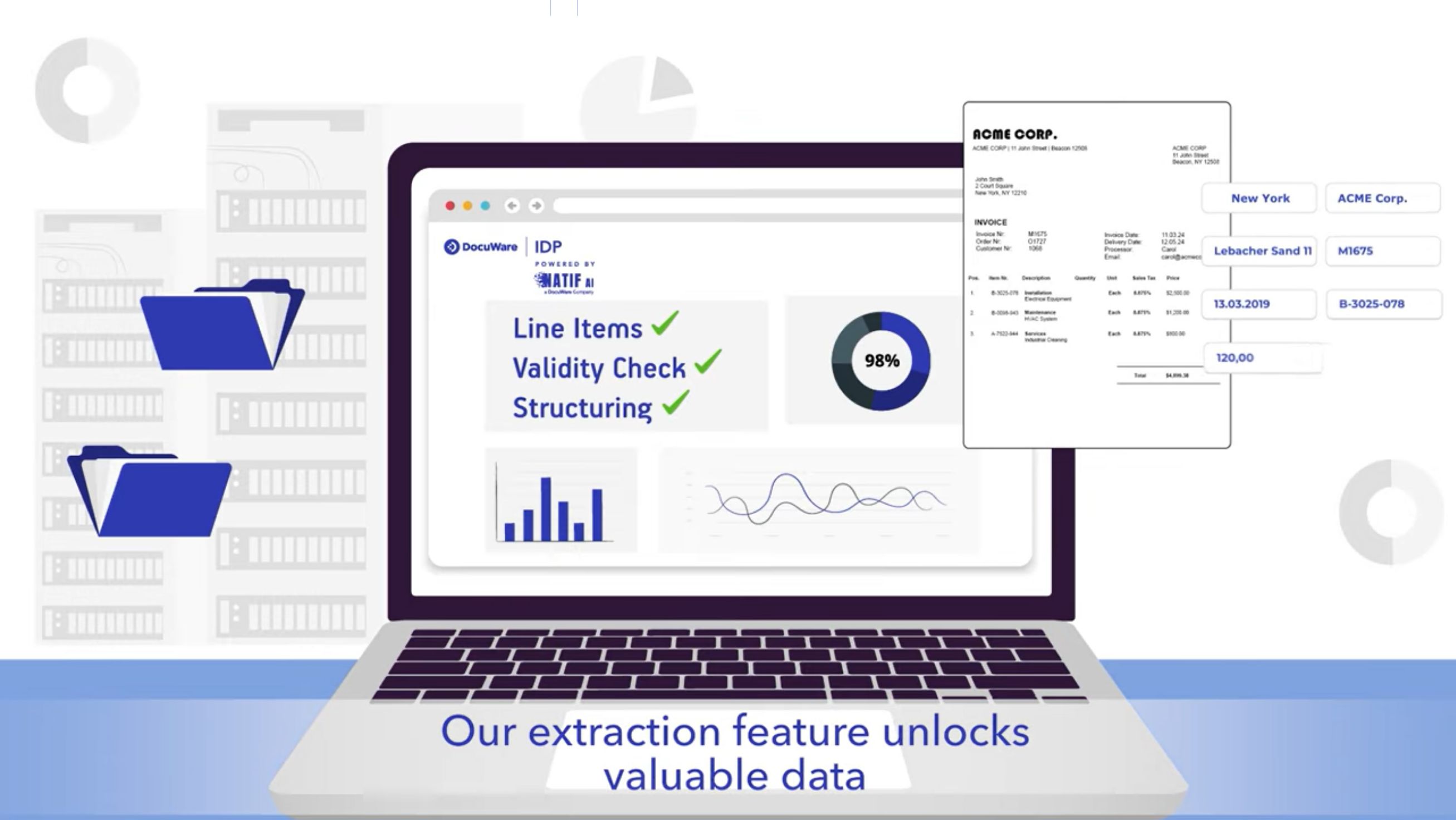 DocuWare IDP deluje v ozadju, prihrani dragocen čas za pomembnejše naloge in z avtomatizacijo dokumentnih tokov odpravi potrebo po ročnem delu.
